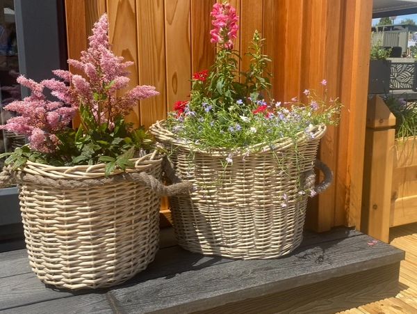 From mid-March through to the end of summer, we proudly showcase our in-house designed zinc planters in a variety of shapes and styles. Alongside these, you’ll find wicker baskets and lanterns, traditional garden trugs, eye-catching wind spinners, and decorative garden stakes to add personality to any outdoor space.