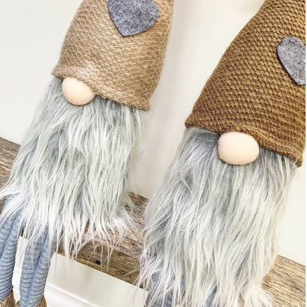 A delightful duo of soft to the touch sitting Gonks, perfectly set with neutral colour tones and fluffy beards to complete the look