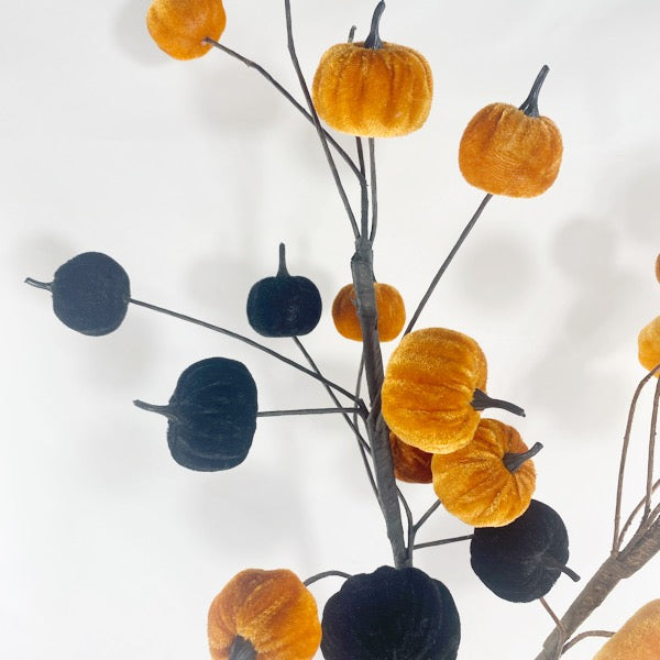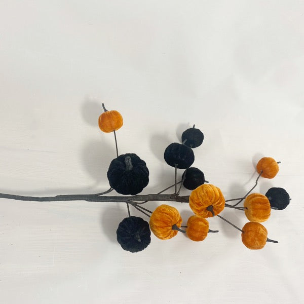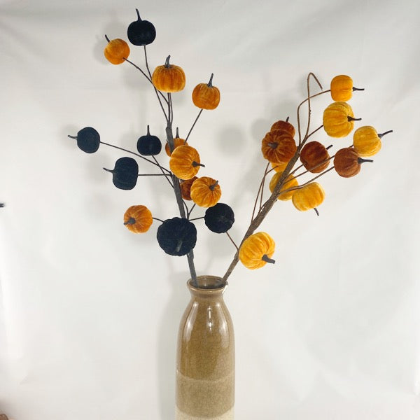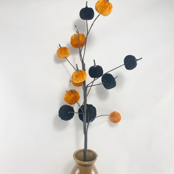 Velvet Pumpkin Twig Stem – Black & Orange Halloween Decoration