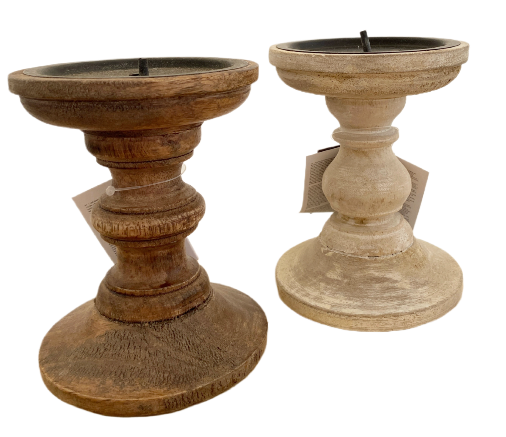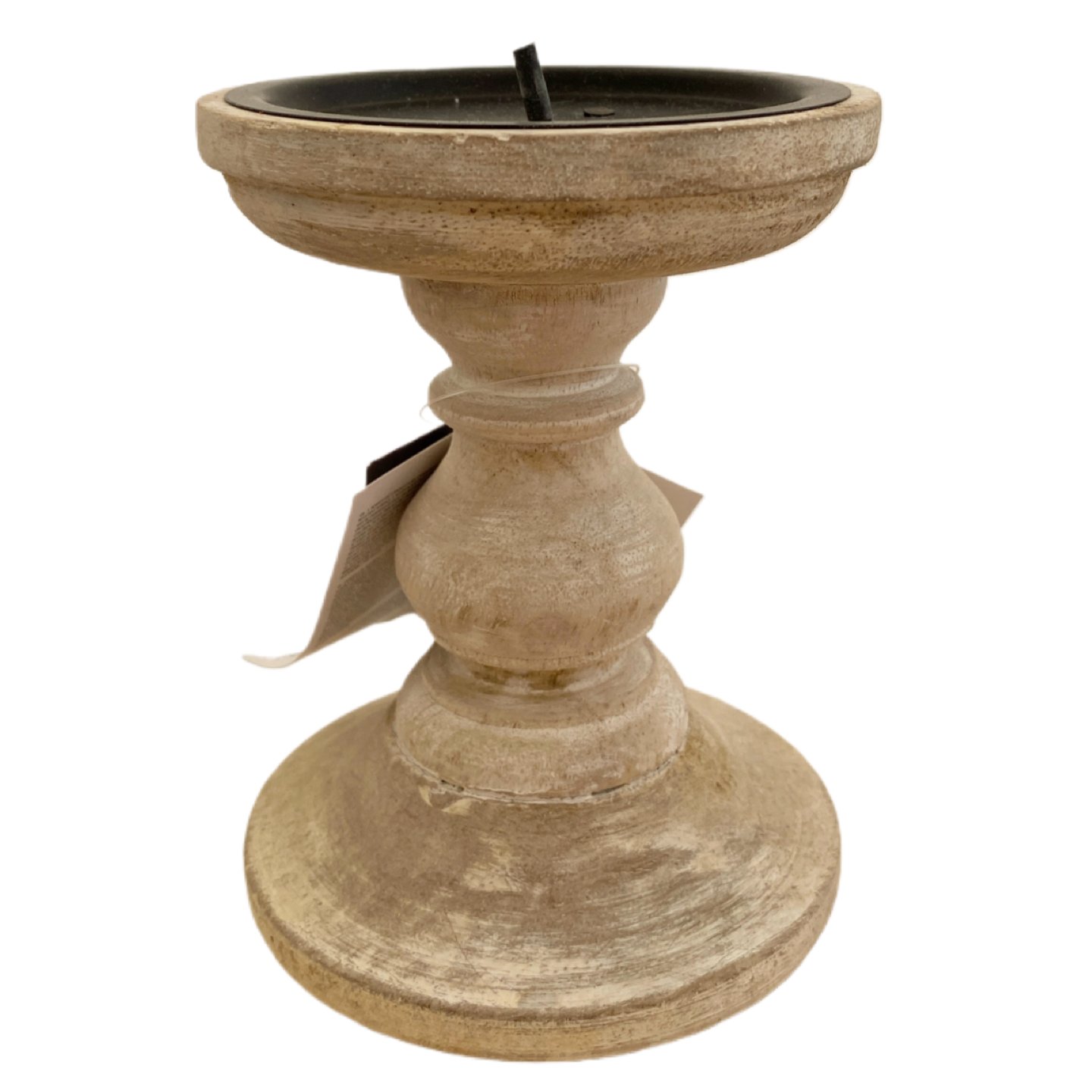 Wooden Rustic Candlestick - off white